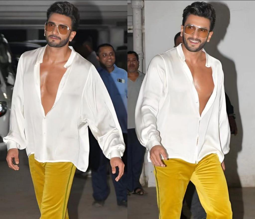 सफेद शर्ट और पीली पैंट पहने रणवीर सिंह ने एक बार फिर से अपने बवाल फैशन स्टेटमेंट का कमाल दिखाया.