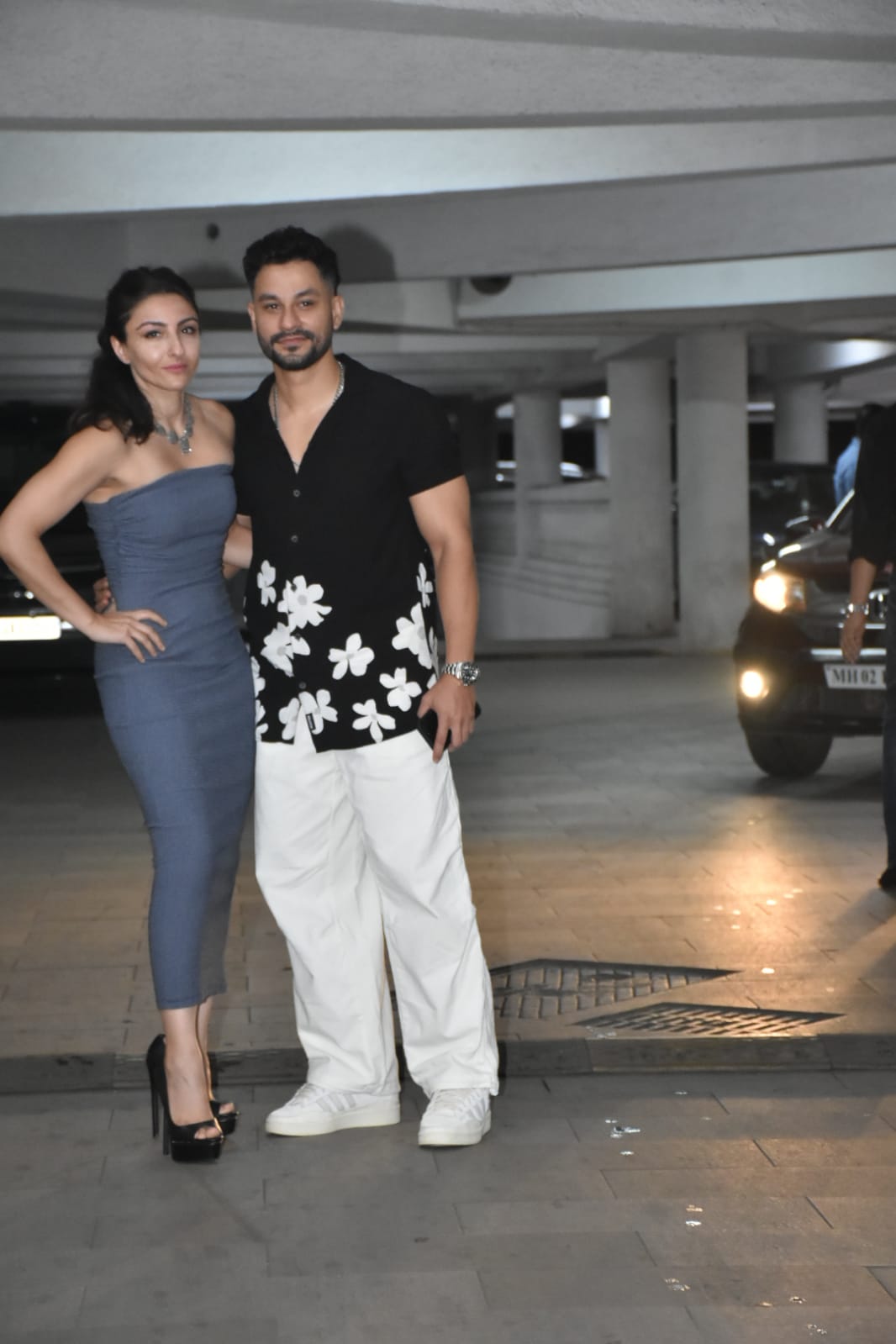 ऑफ शॉल्डर ड्रेस में सोहा अली खान ने पति कुणाल खेमू के साथ पैपराजी के कैमरा के सामने खूब पोज दिए.