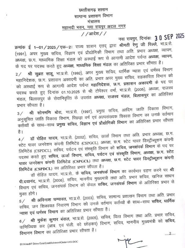 सुब्रत साहू अब सचिवालय से मुक्त हो गए हैं और नए पद पर काम करेंगे।