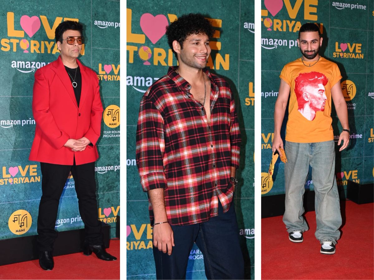 वेब सीरीज ‘लव स्टोरियां’ की स्पेशल स्क्रीनिंग में करण जौहर लाल रंग का ब्लेजर पहनकर पहुंचे और सारी लाइमलाइट चुरा ली. वहीं, सिद्धांत चतुर्वेदी क्लीव शेव लुक में नजर आए. सोशल मीडिया संसेशन ओरी एक बार फिर से अपने स्टाइल और पिकाचू मोबाइल कवर की वजह से सुर्खियों में रहे.