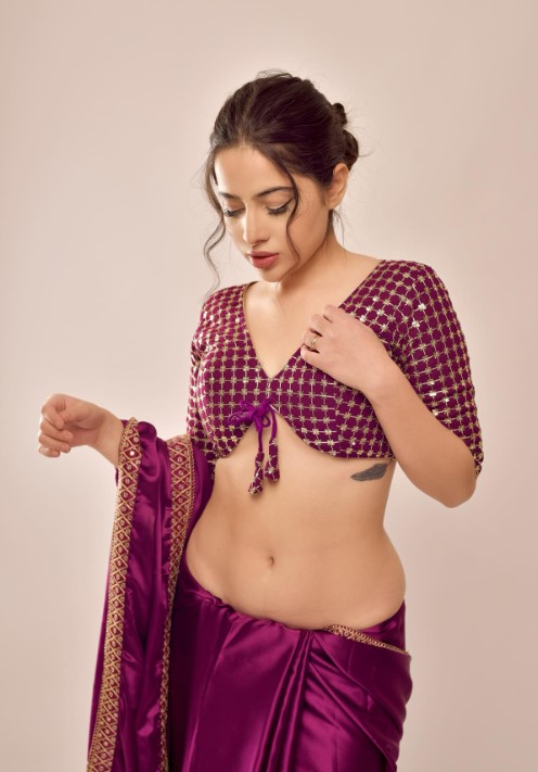 उर्फी जावेद ने इस लुक में ब्लू कलर की साड़ी बेहद ही बोल्ड अंदाज में कैरी की है. हसीना ने बिना ब्लाउज के सिर्फ दो सितारों से अपने प्राइवेट पार्ट को कवर किया है. और हाथों में साड़ी के रंग के लंबे ग्लवस कैरी किए हैं.
